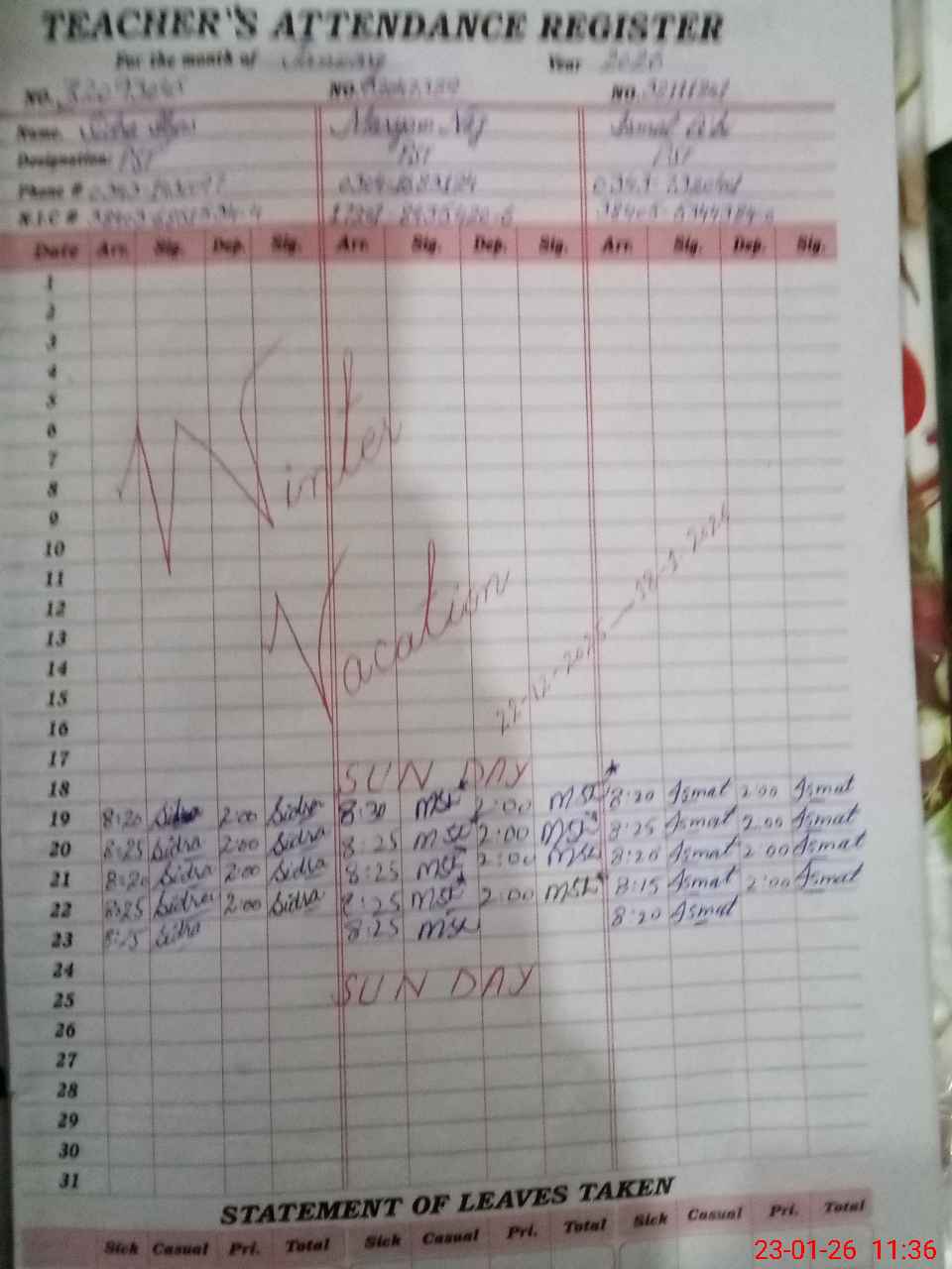 | Name: Um**** Hu**** Designation: (School Headmaster's/Headmistress's) PST Phone/Cell Number: 03**** |