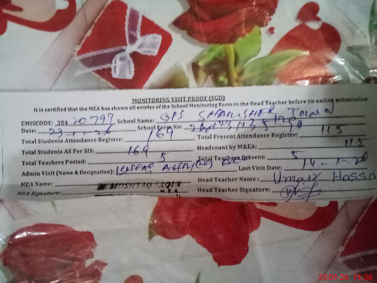 | EMIS Code: 38420797 | Name of School: GPS SHAMSHER TOWN | |||