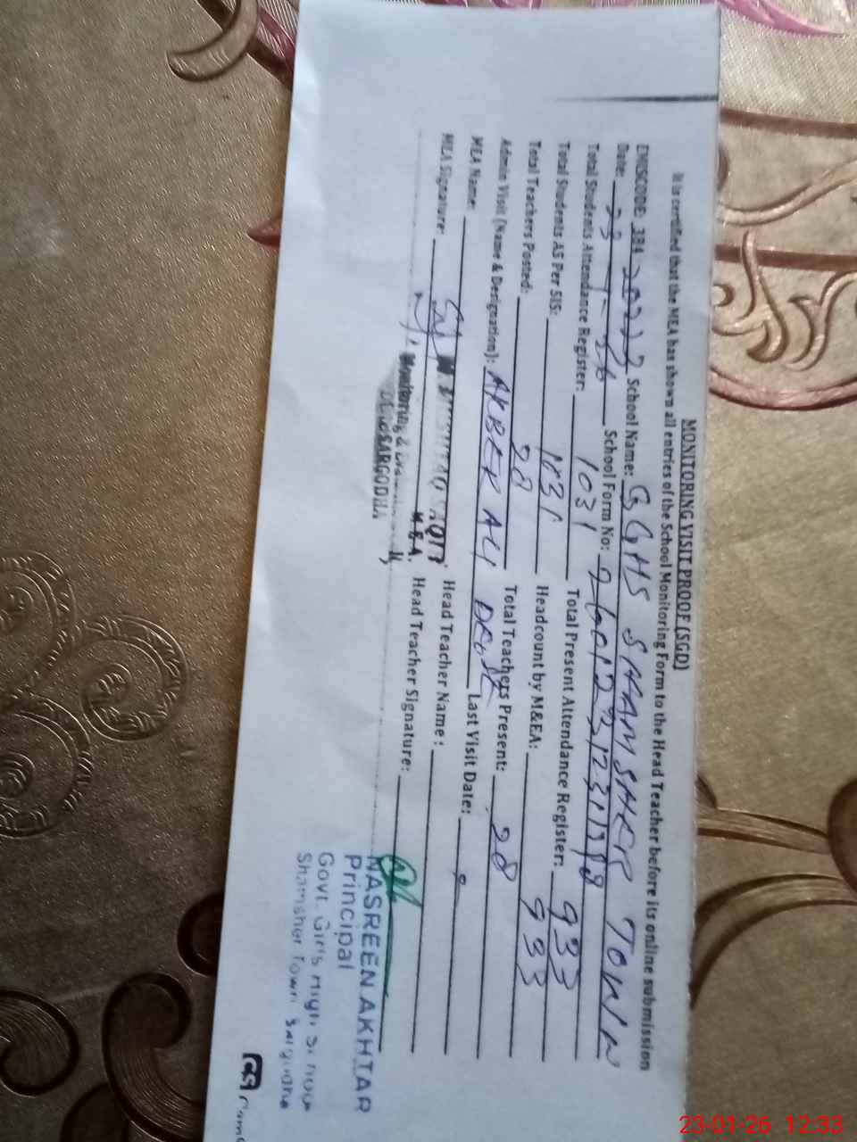 | EMIS Code: 38420223 | Name of School: GGHS SHAMSHER TOWN | |||