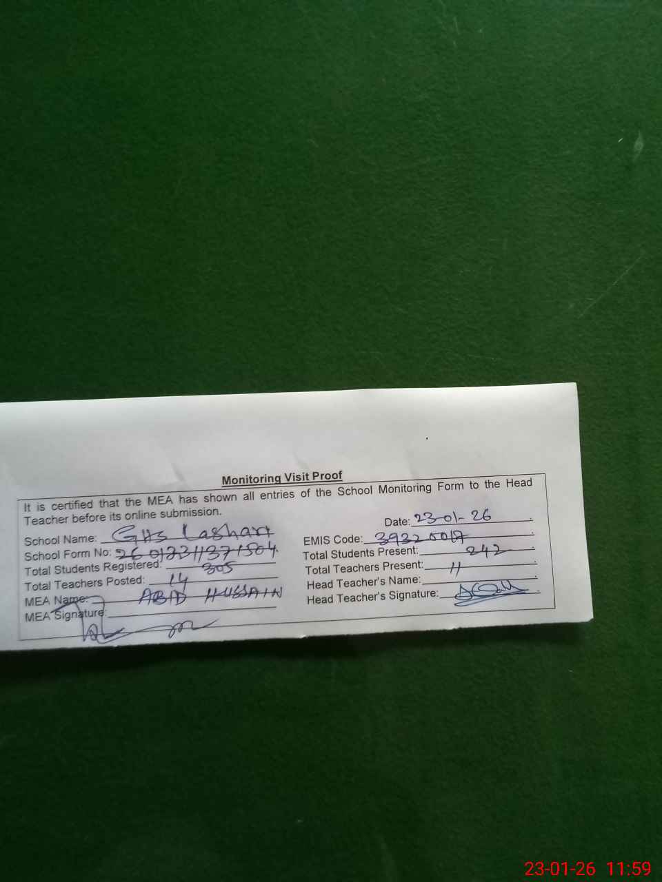| EMIS Code: 39320017 | Name of School: GHS LASHARI | |||