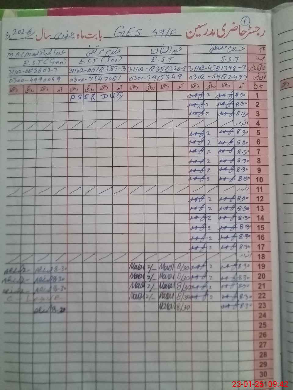 | Name: Gh**** Mu**** Designation: (School Headmaster's/Headmistress's) S.S.T. Phone/Cell Number: 03**** |