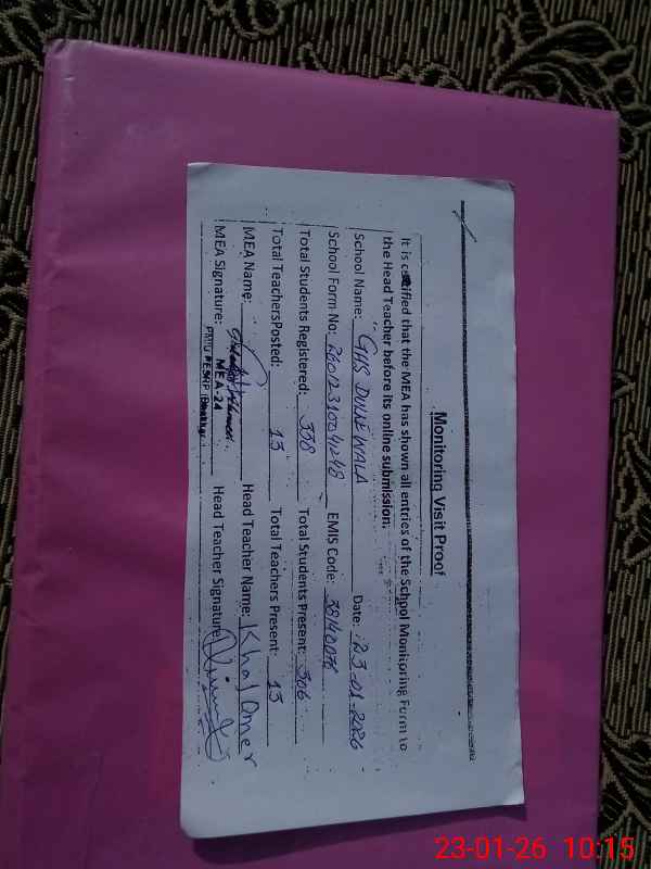 | EMIS Code: 38140076 | Name of School: GHS DULLE WALA | |||