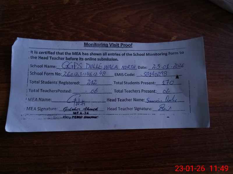 | EMIS Code: 38140298 | Name of School: GGPS DULLE WALA NORTH | |||