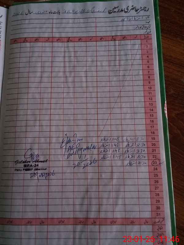 | Attendance Register | Head Teacher | MEA with School | Visit Proof |