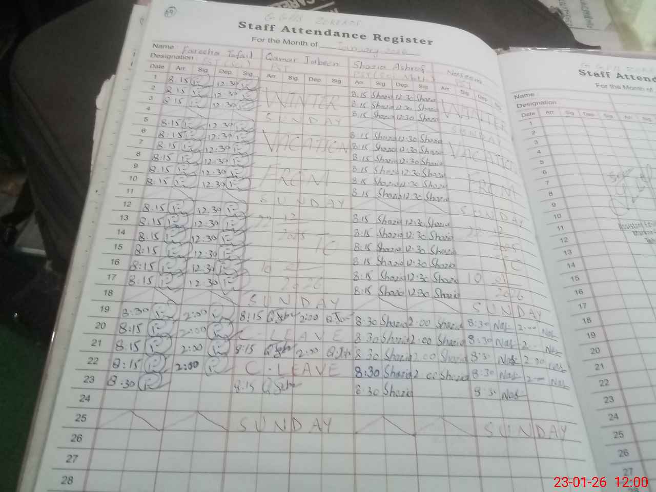 | CNIC | Full Name | Designation | R/C | Absence During Last Calender Month |