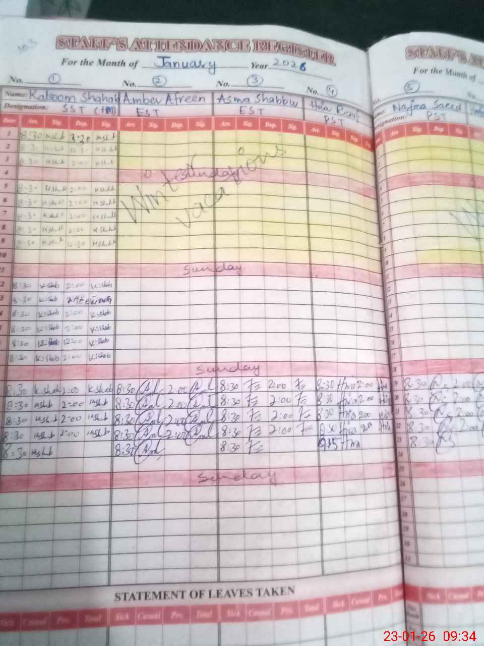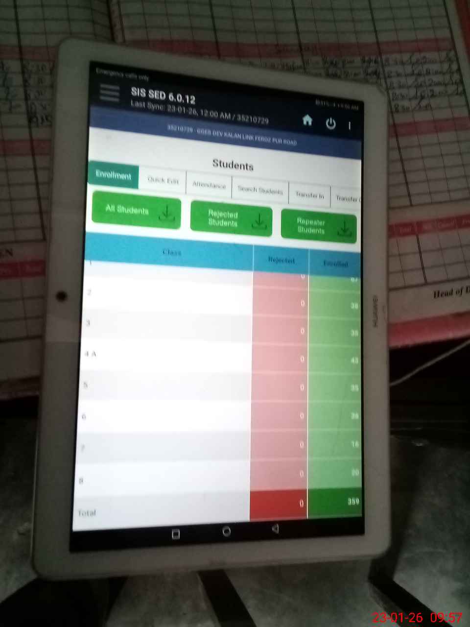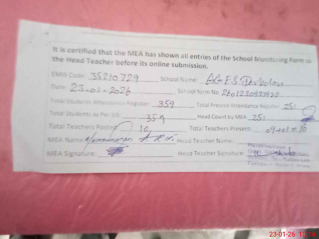 | Attendance Register | Head Teacher | MEA with School | Visit Proof |