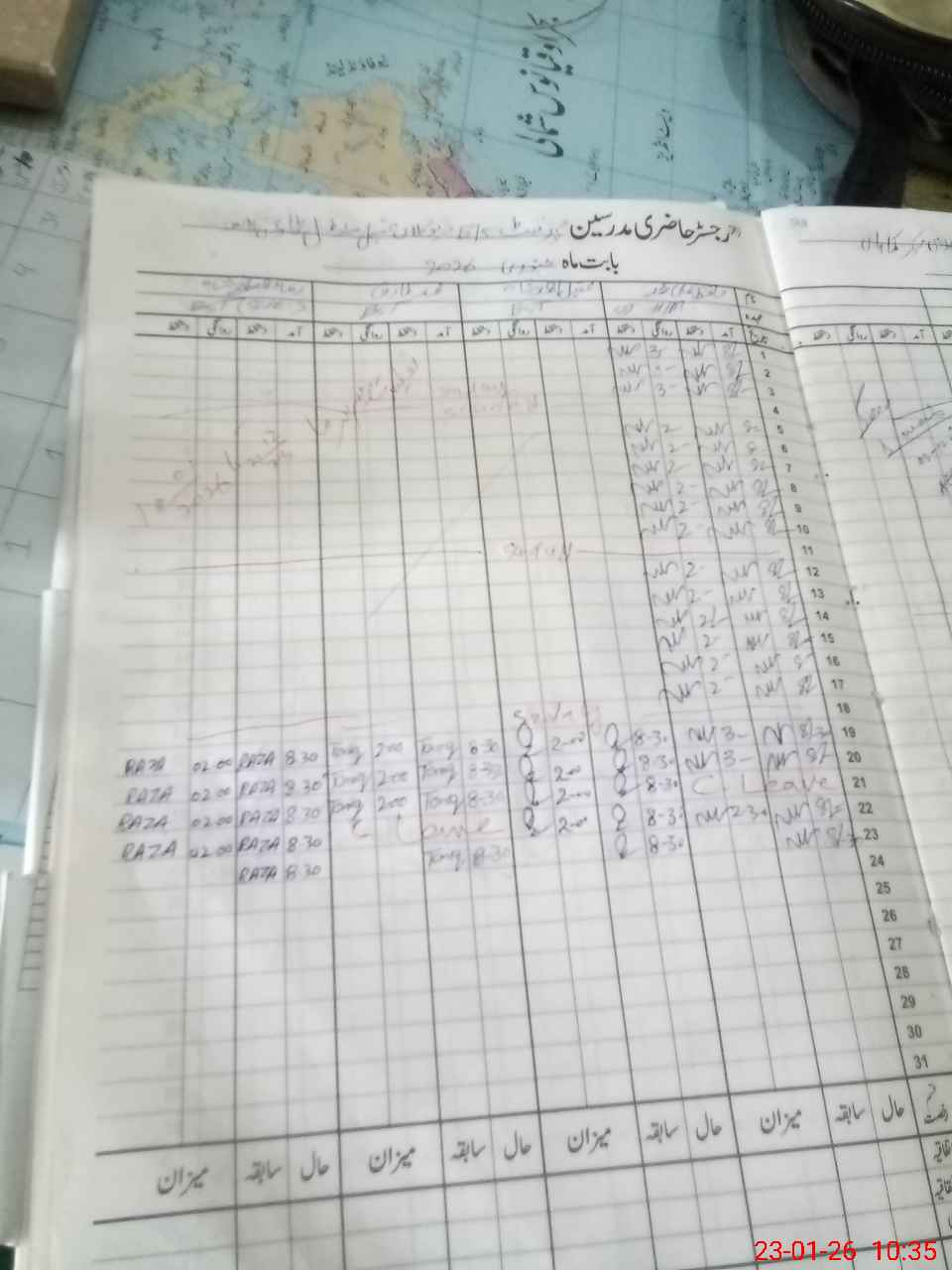 | CNIC | Full Name | Designation | R/C | Absence During Last Calender Month |