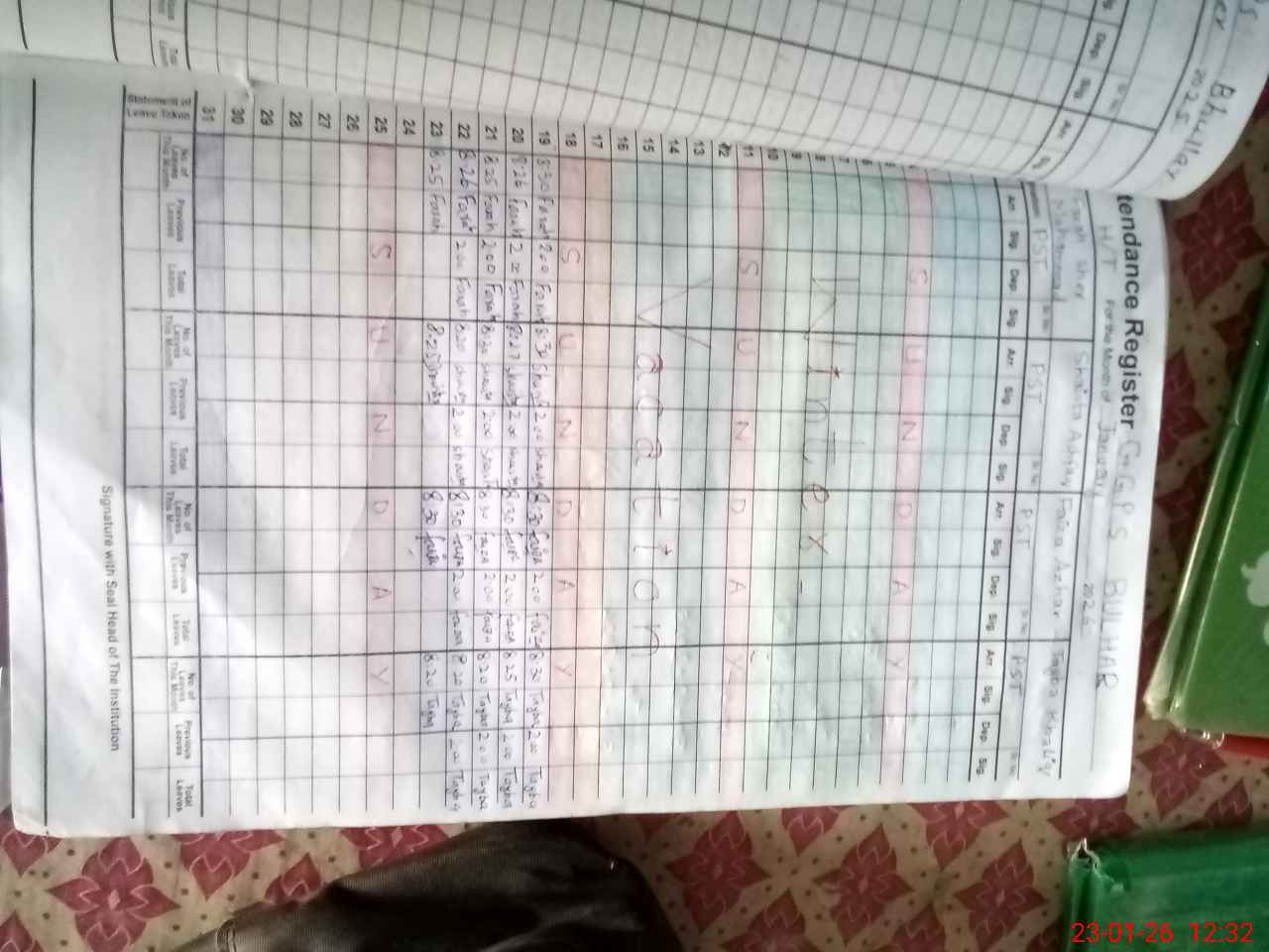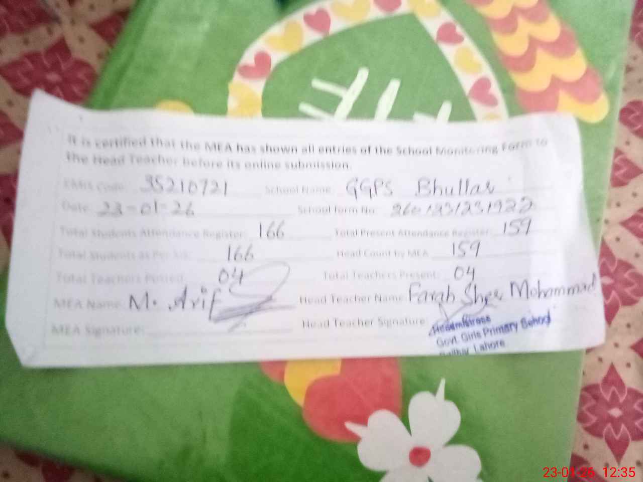 | Attendance Register | Head Teacher | MEA with School | Visit Proof |