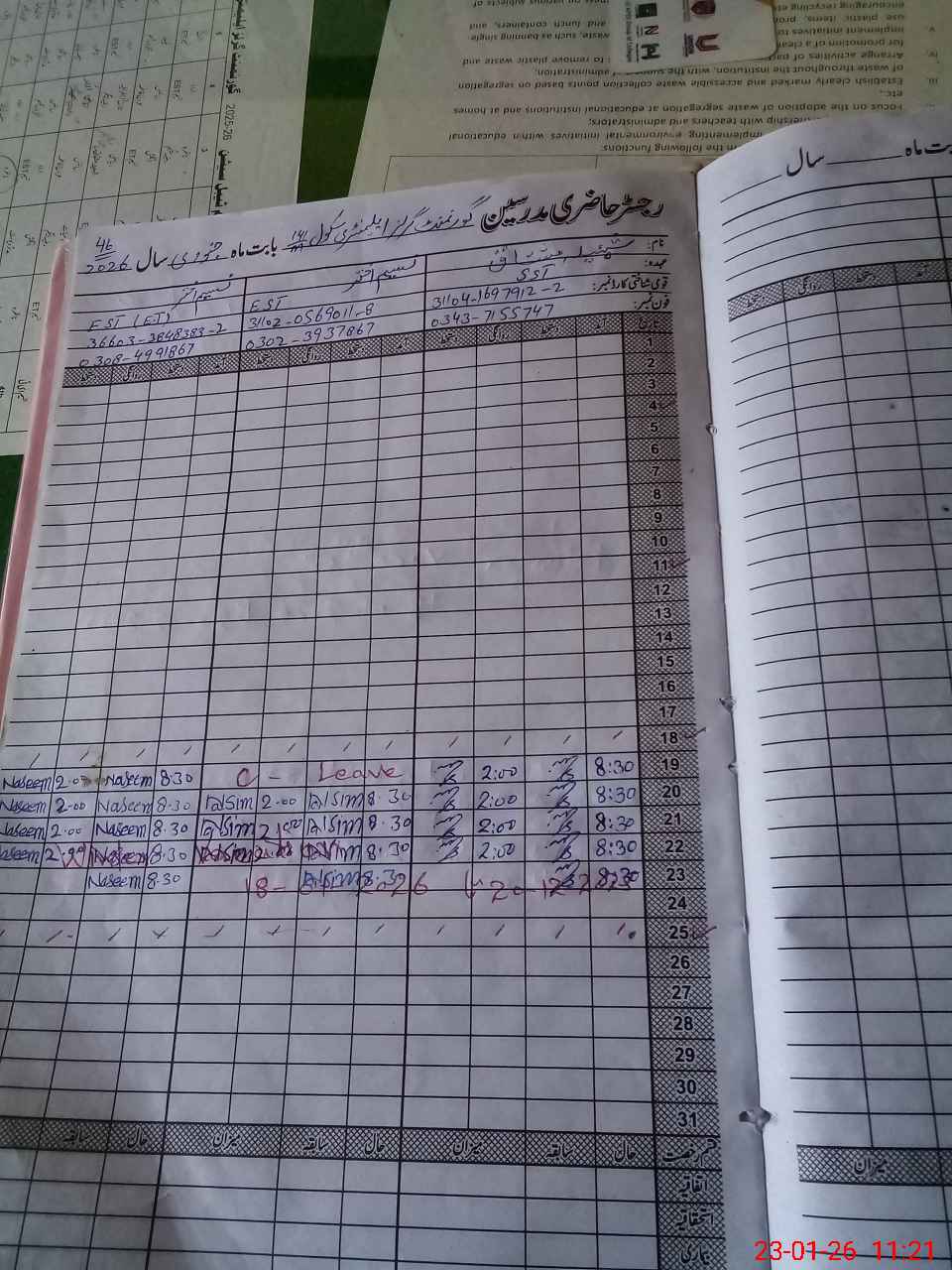 | Name: Sh**** Mu**** Designation: (School Headmaster's/Headmistress's) SSt Phone/Cell Number: 03**** |