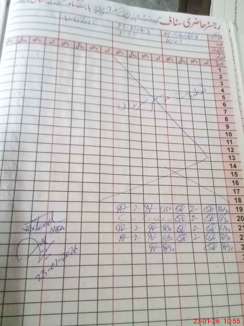| CNIC | Full Name | Designation | R/C | Absence During Last Calender Month |