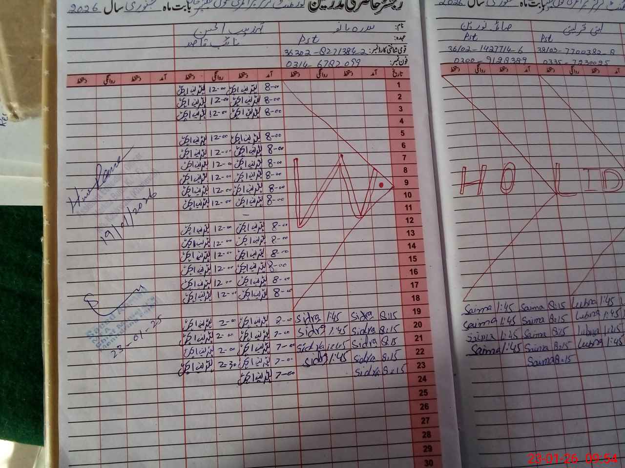 | CNIC | Full Name | Designation | R/C | Absence During Last Calender Month |
