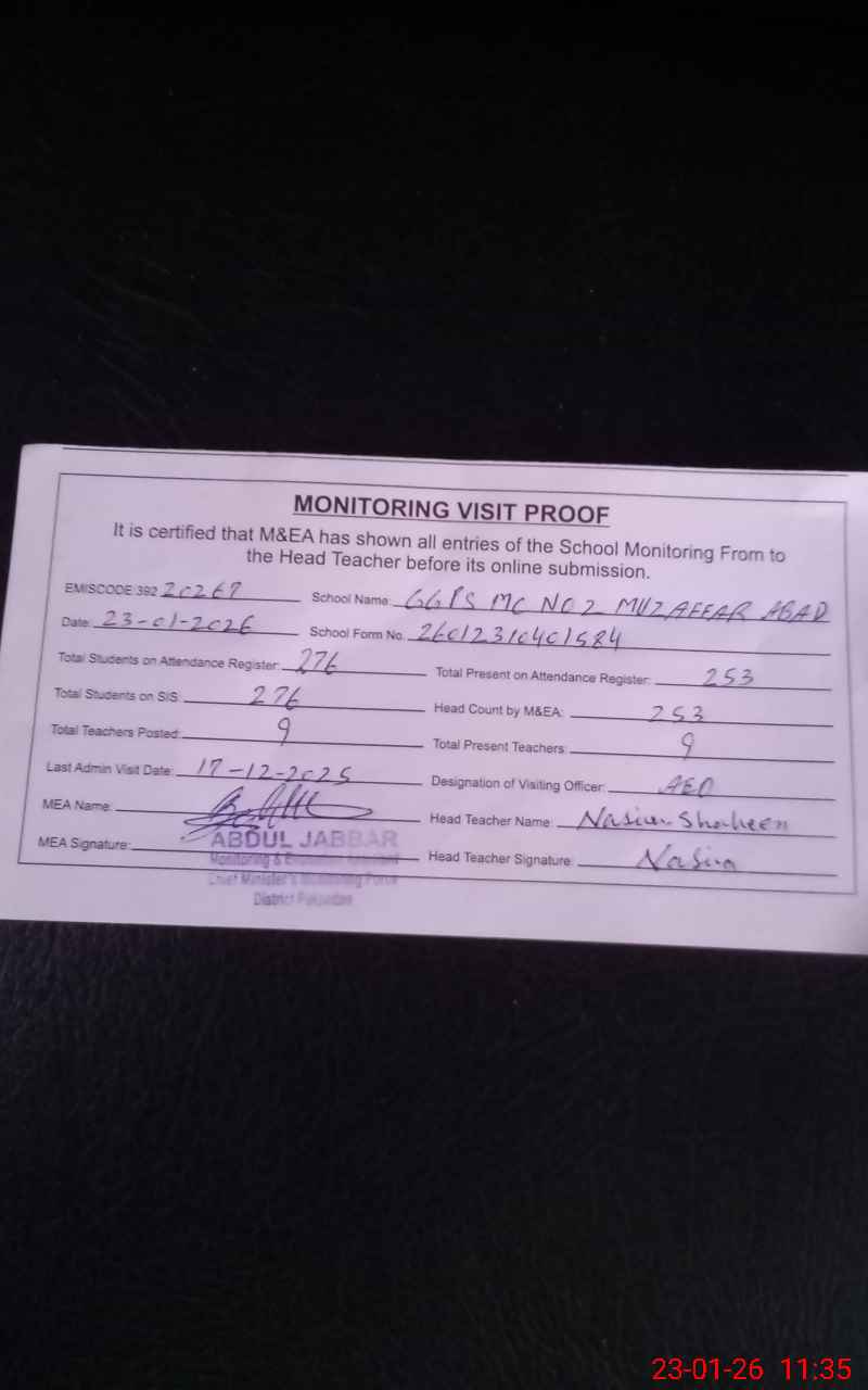 | EMIS Code: 39220267 | Name of School: GGPS MC NO. 2 MUZAFAR ABAD | |||