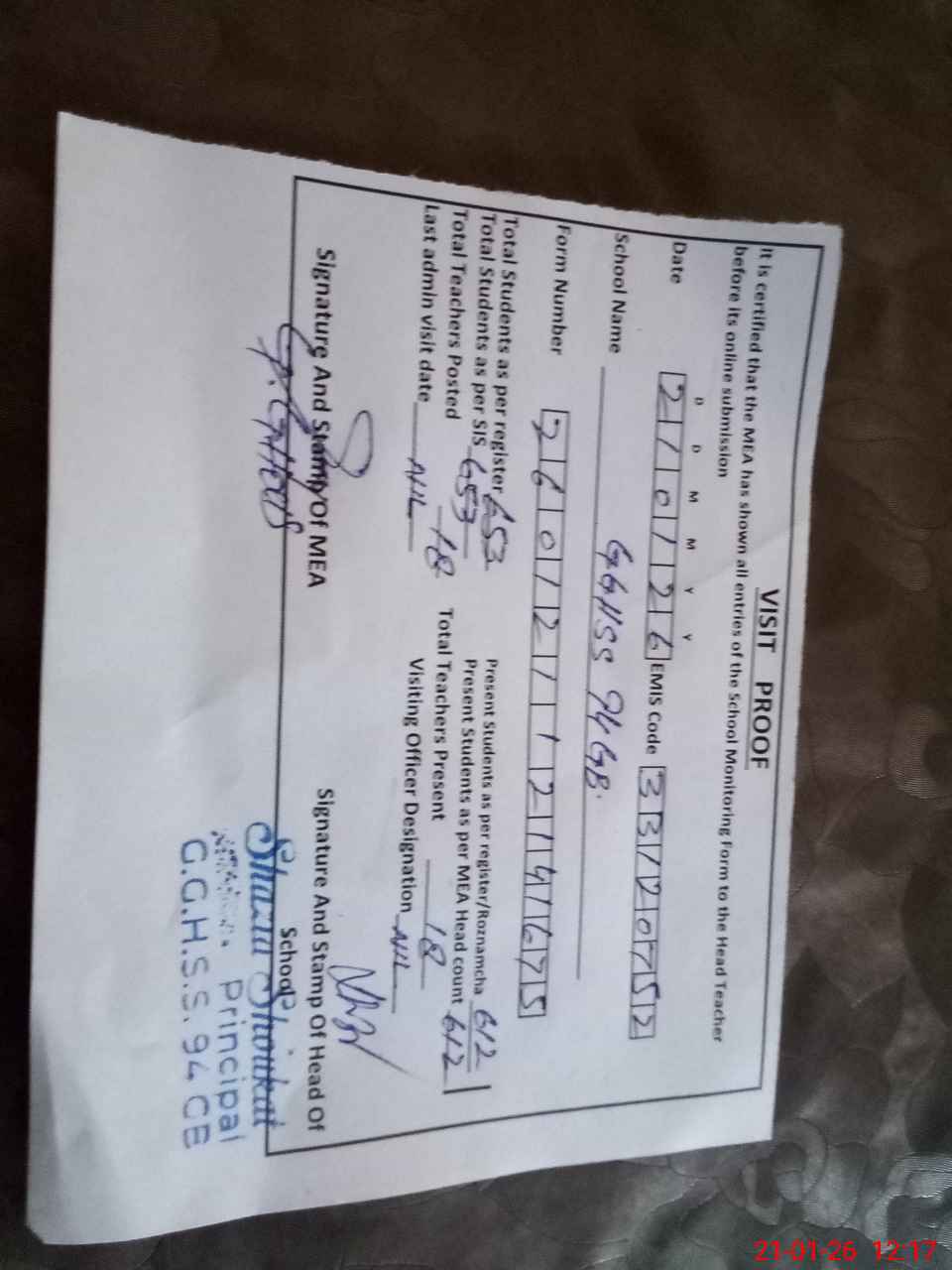 | EMIS Code: 33120752 | Name of School: GGHSS CHAK 94 GB | |||