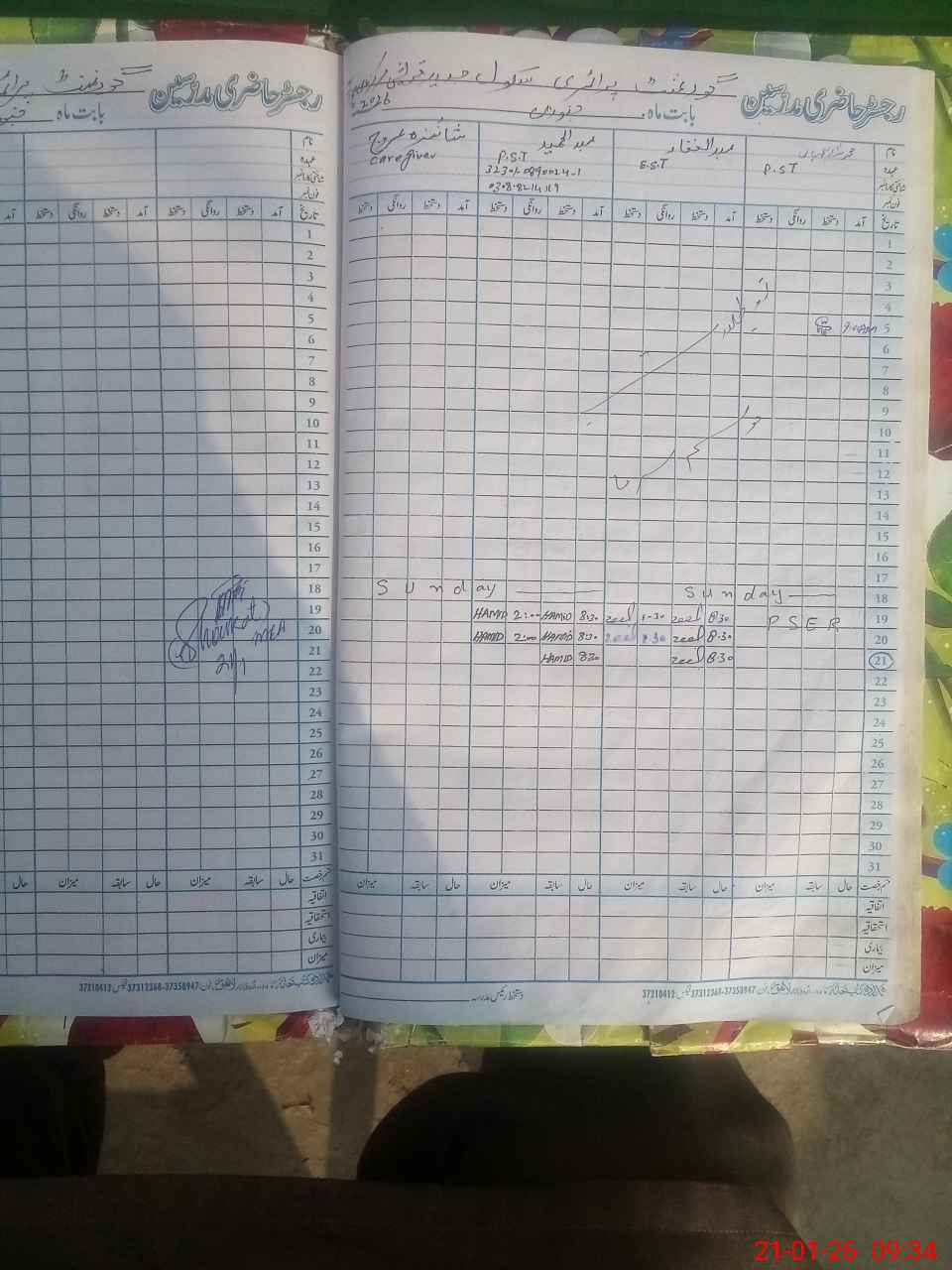 | CNIC | Full Name | Designation | R/C | Absence During Last Calender Month |