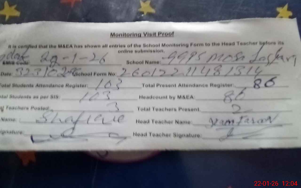 | Attendance Register | Head Teacher | MEA with School | Visit Proof |