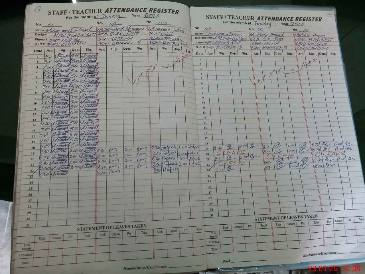 | Name: MU**** NA**** Designation: (School Headmaster's/Headmistress's) PST Phone/Cell Number: 03**** |