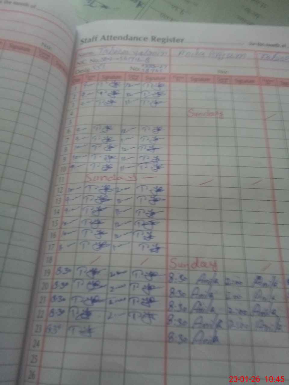 | CNIC | Full Name | Designation | R/C | Absence During Last Calender Month |