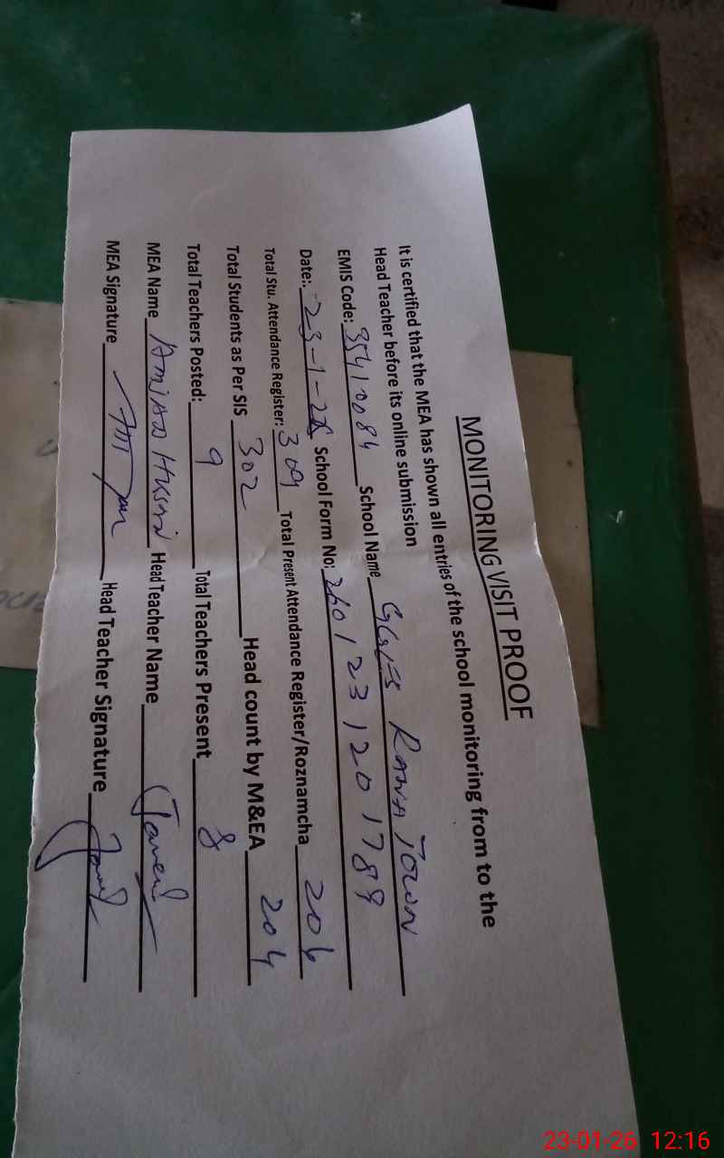 | Attendance Register | Head Teacher | MEA with School | Visit Proof |