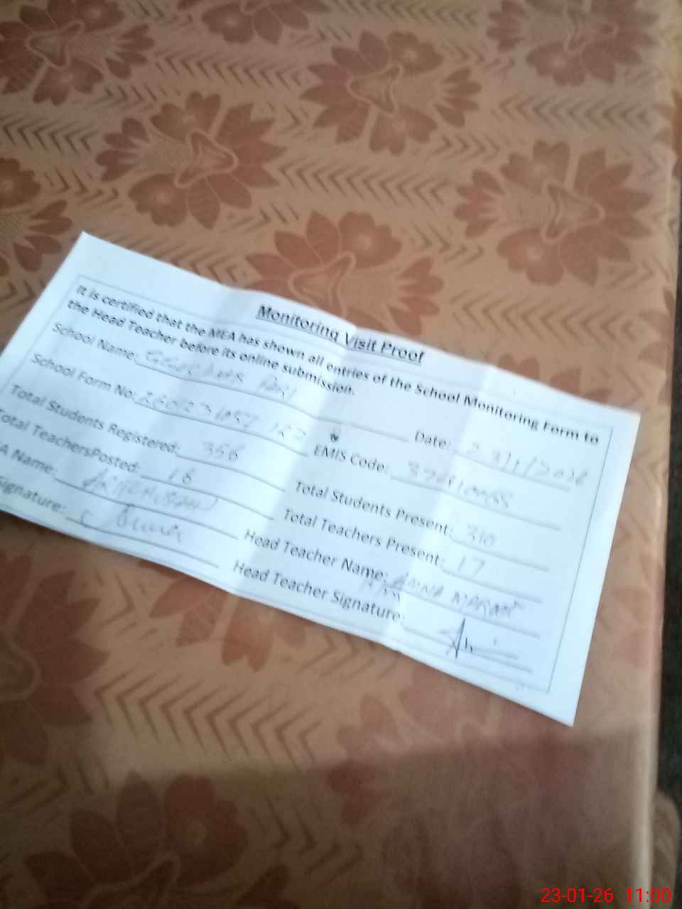 | EMIS Code: 37410068 | Name of School: GGHS DHAB PARI | |||