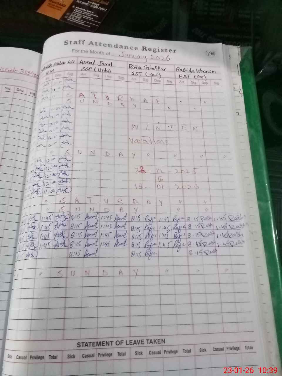 | 31**** | Sy**** Ta**** Bu**** | EST Arabic | Regular | 15 | 0 | 0 | 0 | 0 | 0 | 0 | 15 | 0 | Casual |