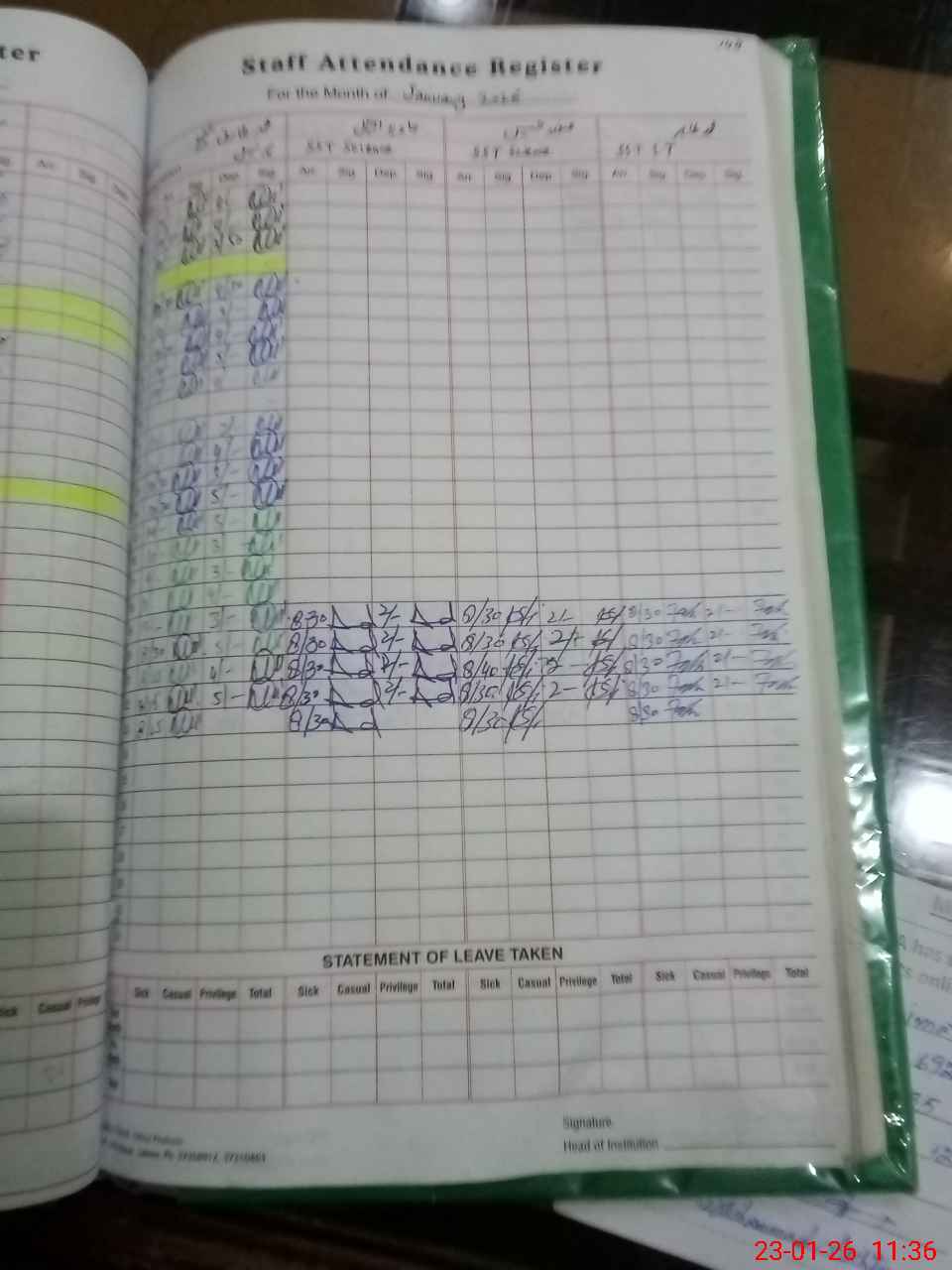 Leave Type | Remarks for today (Leave,Training, Exam,Absent,Late, Other duty) |