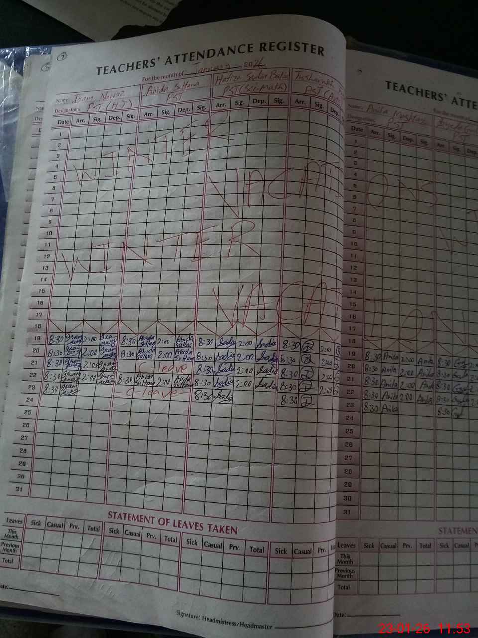 | Name: IR**** NA**** Designation: (School Headmaster's/Headmistress's) PST Phone/Cell Number: 03**** |