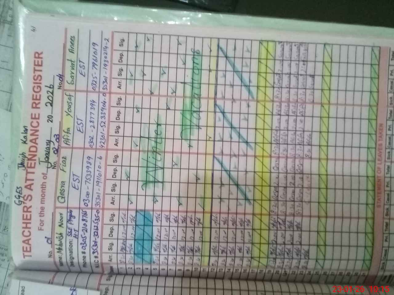 | CNIC | Full Name | Designation | R/C | Absence During Last Calender Month |