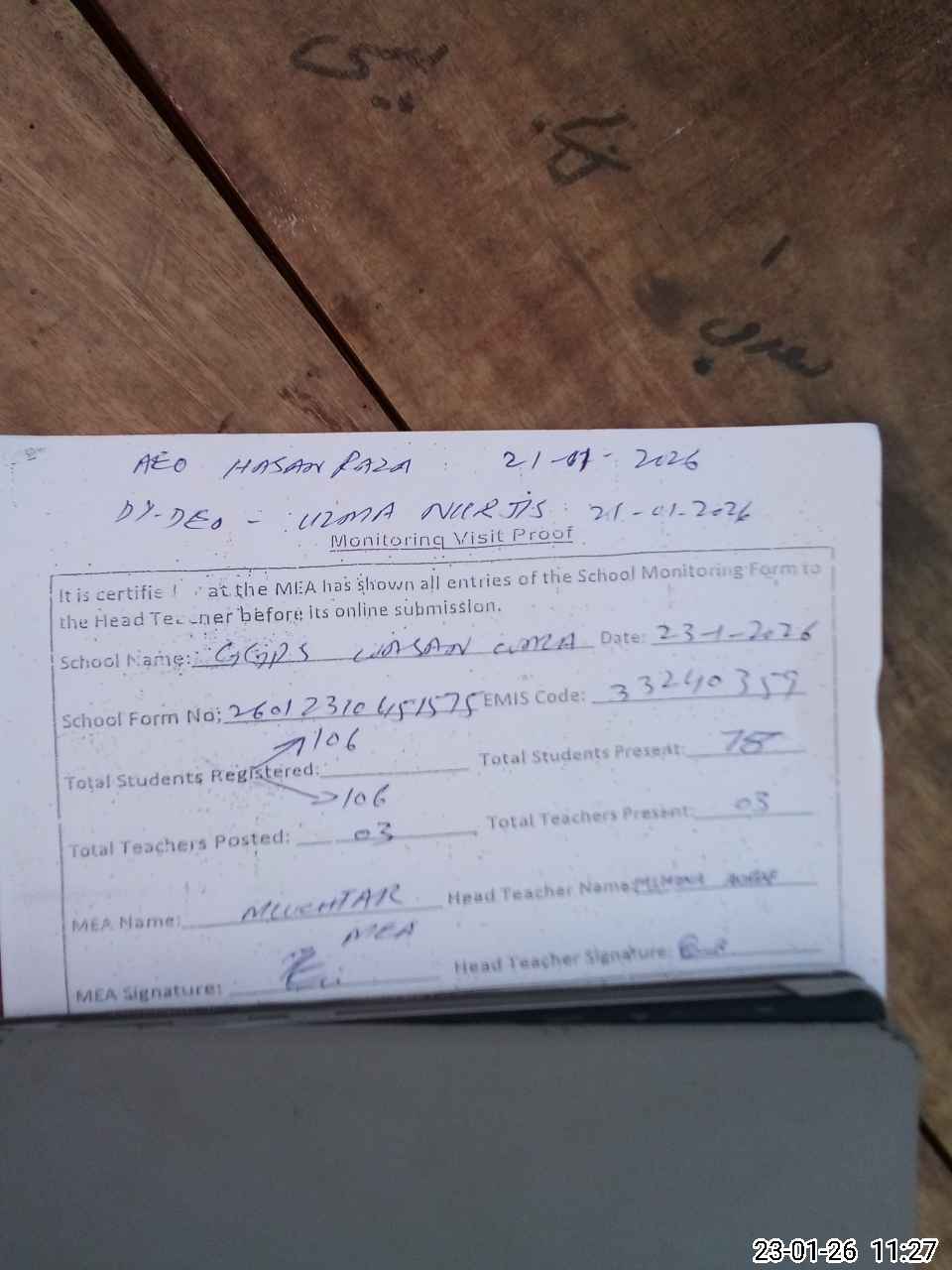 | EMIS Code: 33240359 | Name of School: GGPS WASSAN WALA | |||