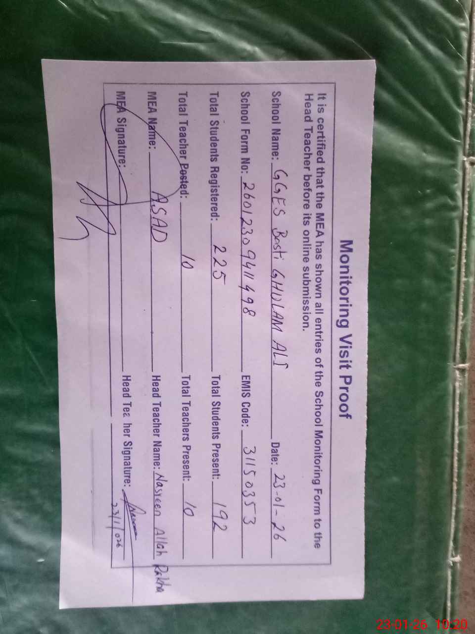 | EMIS Code: 31150353 | Name of School: GGES GHULAM ALI | |||