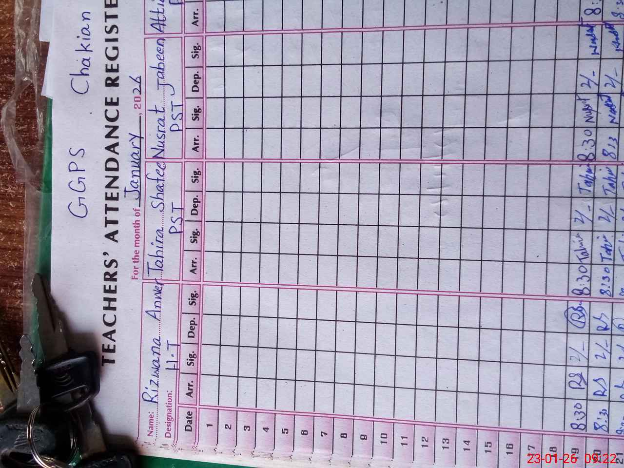 | Name: RI**** AN**** Designation: (School Headmaster's/Headmistress's) PST Phone/Cell Number: 03**** |