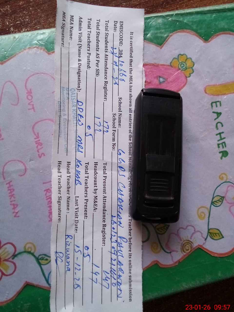| Attendance Register | Head Teacher | MEA with School | Visit Proof |