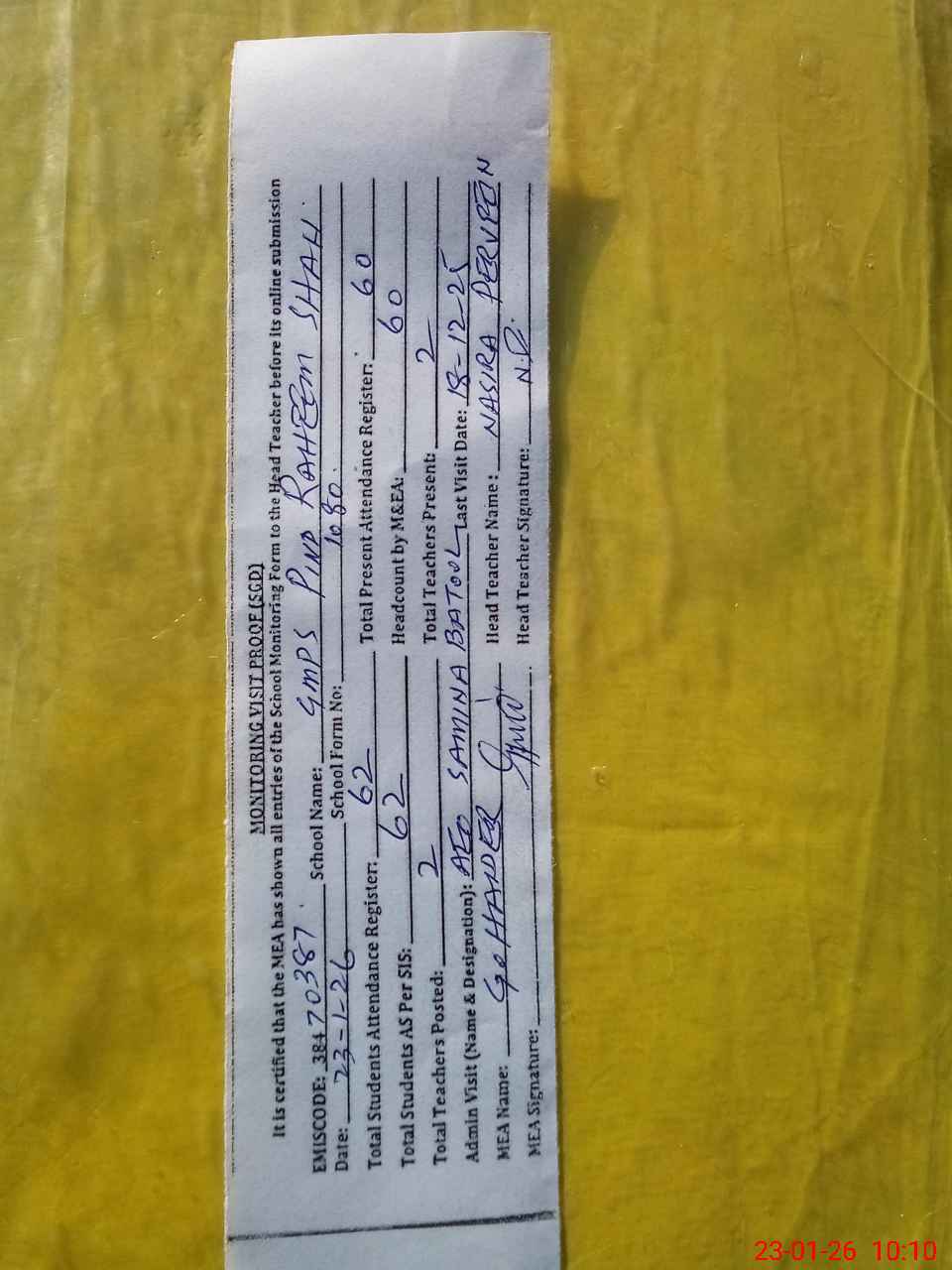 | EMIS Code: 38470387 | Name of School: GMPS PIND RAHEEM SHAH | |||