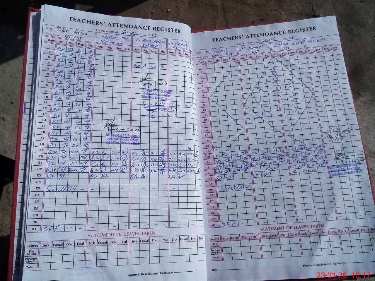 | Name: Ta**** Ab**** Designation: (School Headmaster's/Headmistress's) PST Phone/Cell Number: 03**** |