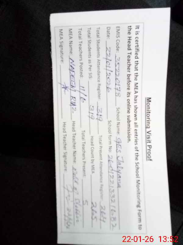 | EMIS Code: 35220178 | Name of School: GES JALYANA | |||