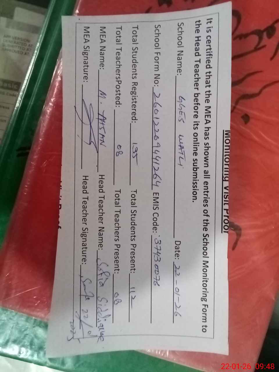 | Certified that this School was Inspected by the Undersigned MEA/DMO Today and the Information Stated Above is as Per Record. | |||||