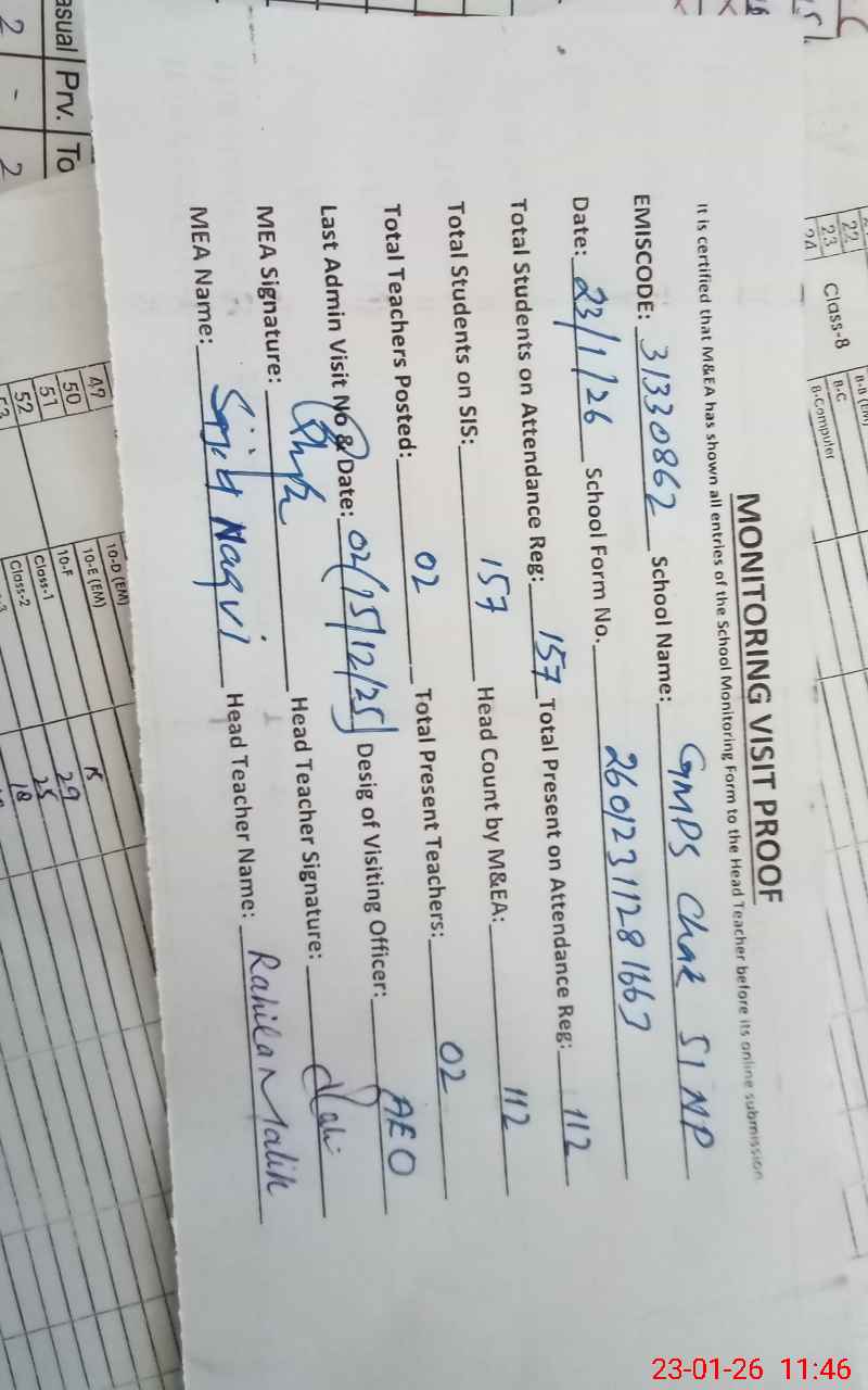 | EMIS Code: 31330862 | Name of School: GMPS CHAK NO.51/NP | |||