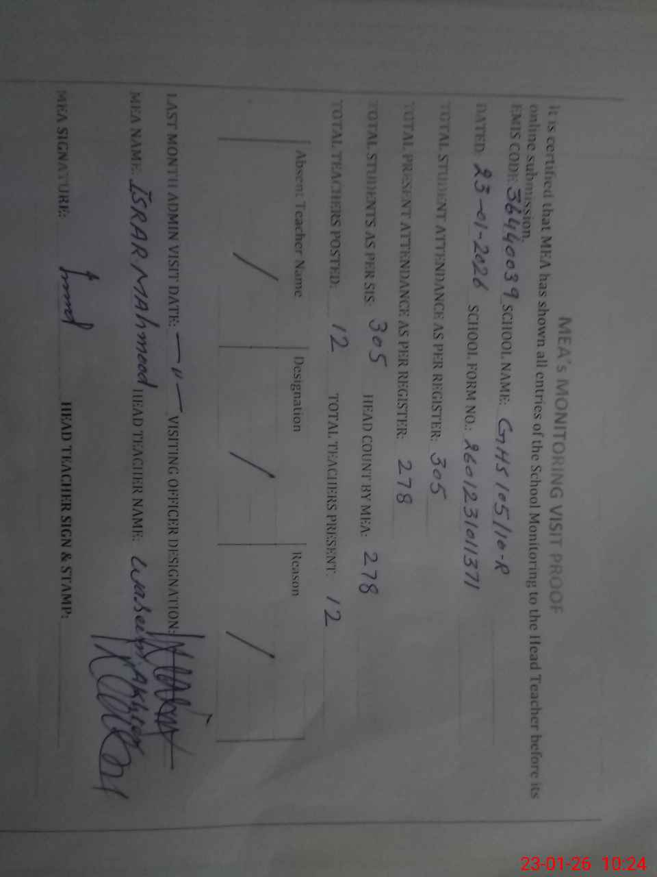 | EMIS Code: 36440039 | Name of School: GHS 105/10-R, JAHANIAN | |||