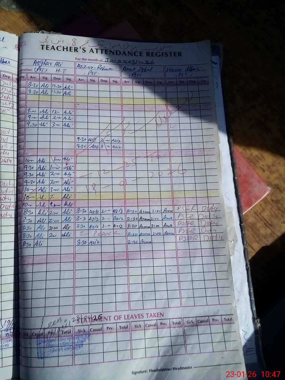| Name: As**** Al**** Designation: (School Headmaster's/Headmistress's) PST/PTC/JV Phone/Cell Number: 03**** |