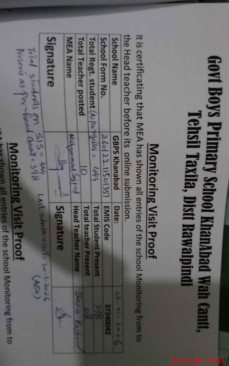 | EMIS Code: 37340042 | Name of School: GPS KHAN ABAD | |||