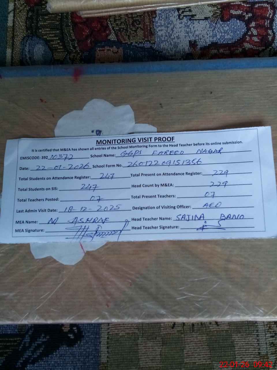 | EMIS Code: 39210372 | Name of School: GGPS MOHALLAH FAREED NAGAR | |||