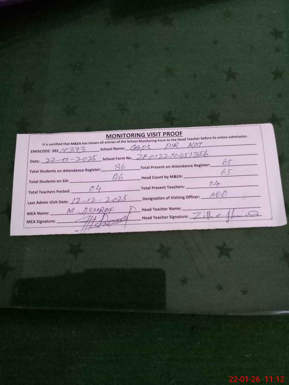 | Certified that this School was Inspected by the Undersigned MEA/DMO Today and the Information Stated Above is as Per Record. | |||||