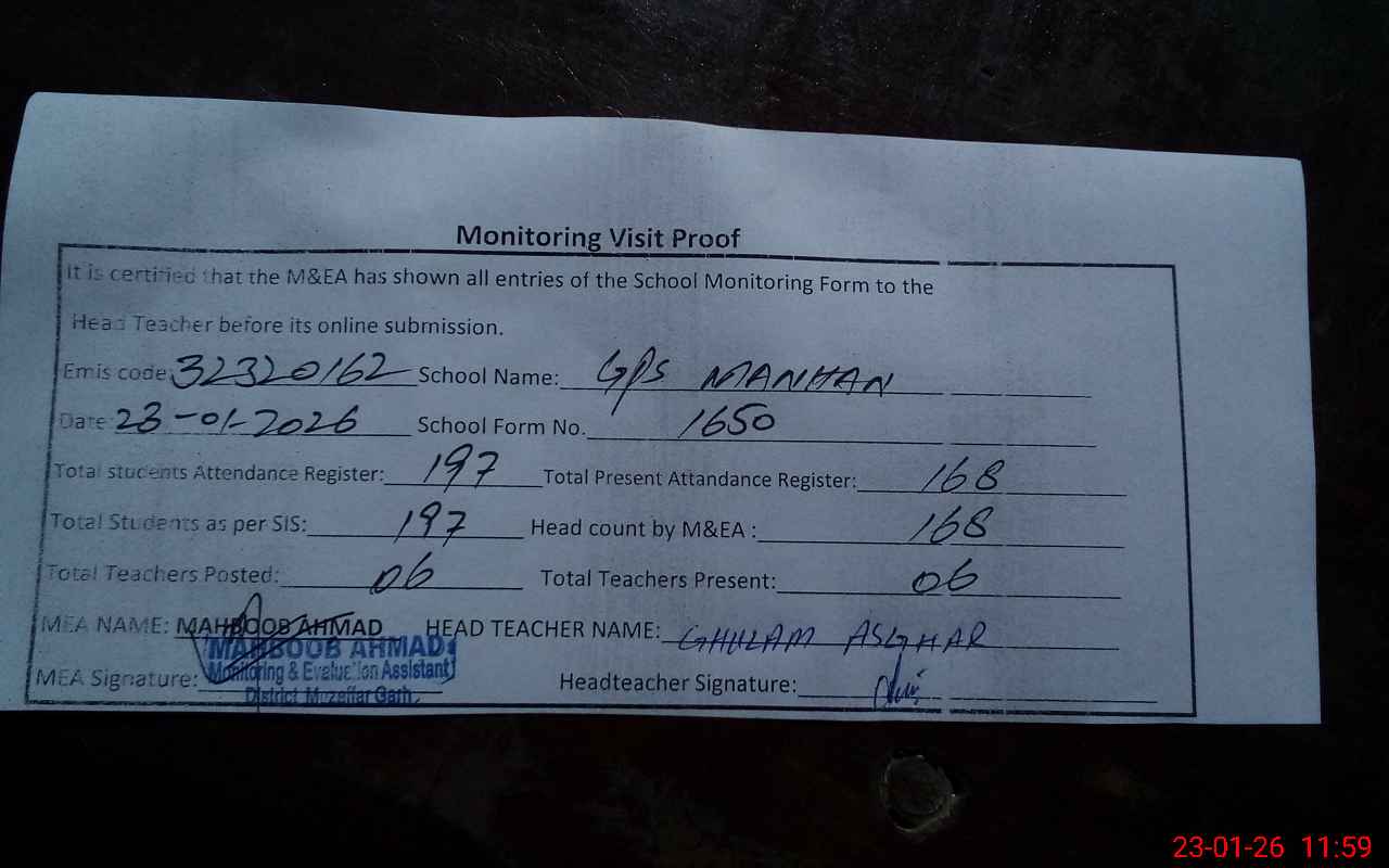 | EMIS Code: 32320162 | Name of School: GPS MANAH | |||