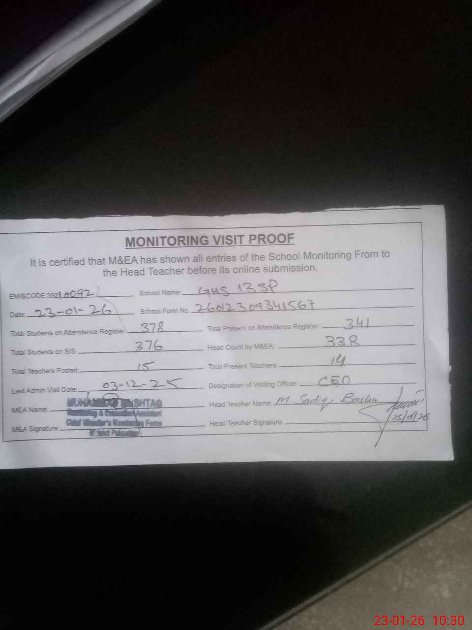 | EMIS Code: 39210092 | Name of School: GHS 13/SP P.O PAKPATTAN | |||