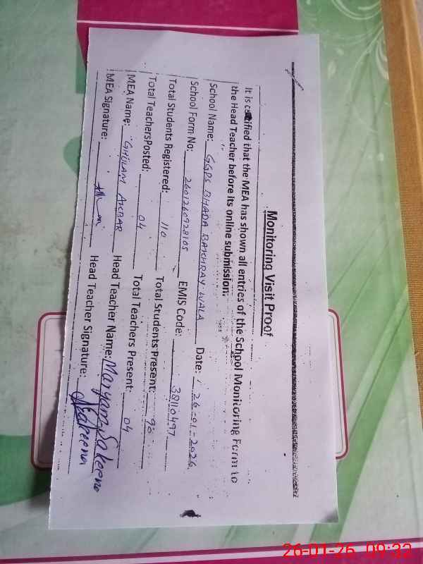 | EMIS Code: 38110497 | Name of School: GGPS BHADDA BAKHRA WALA | |||