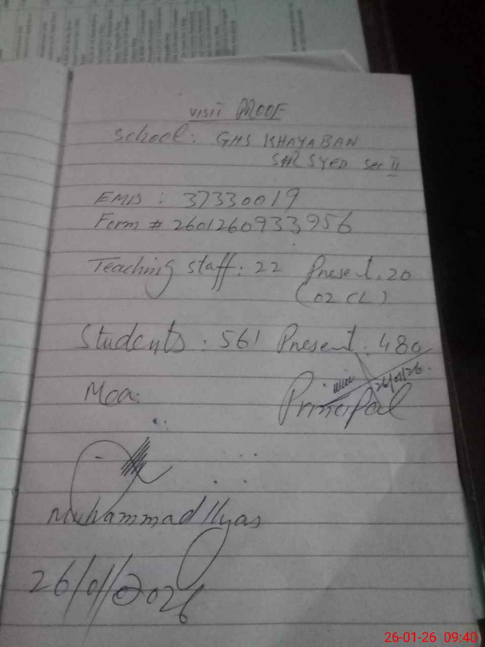 | EMIS Code: 37330019 | Name of School: GHS KHAYABAN-E-SIR SYED | |||