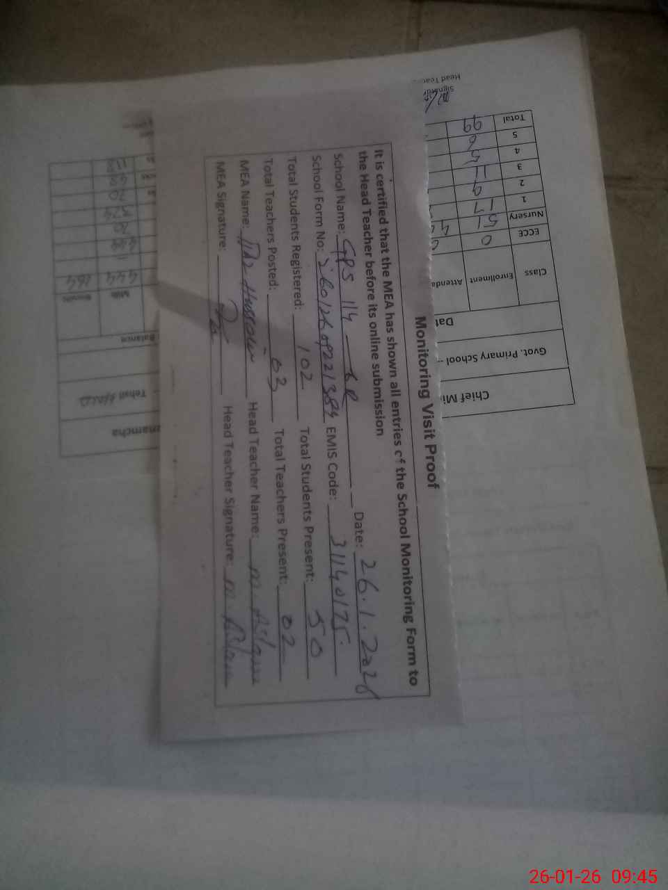 | EMIS Code: 31140175 | Name of School: GPS CHAK NO 114/6-R | |||
