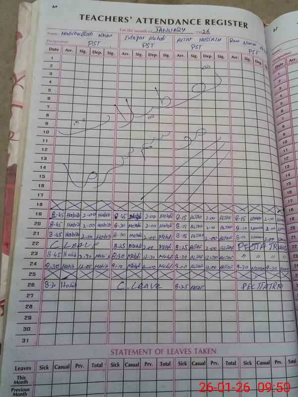 | CNIC | Full Name | Designation | R/C | Absence During Last Calender Month |
