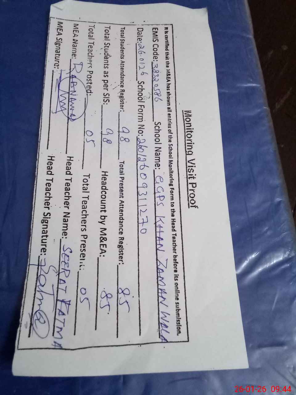 | EMIS Code: 38320586 | Name of School: GGPS KHAN ZAMAN WALA | |||