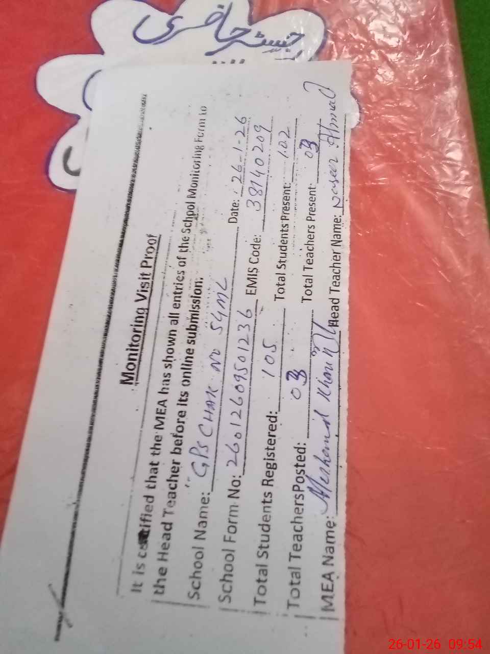 | EMIS Code: 38140209 | Name of School: GPS CHAK NO 54 ML | |||