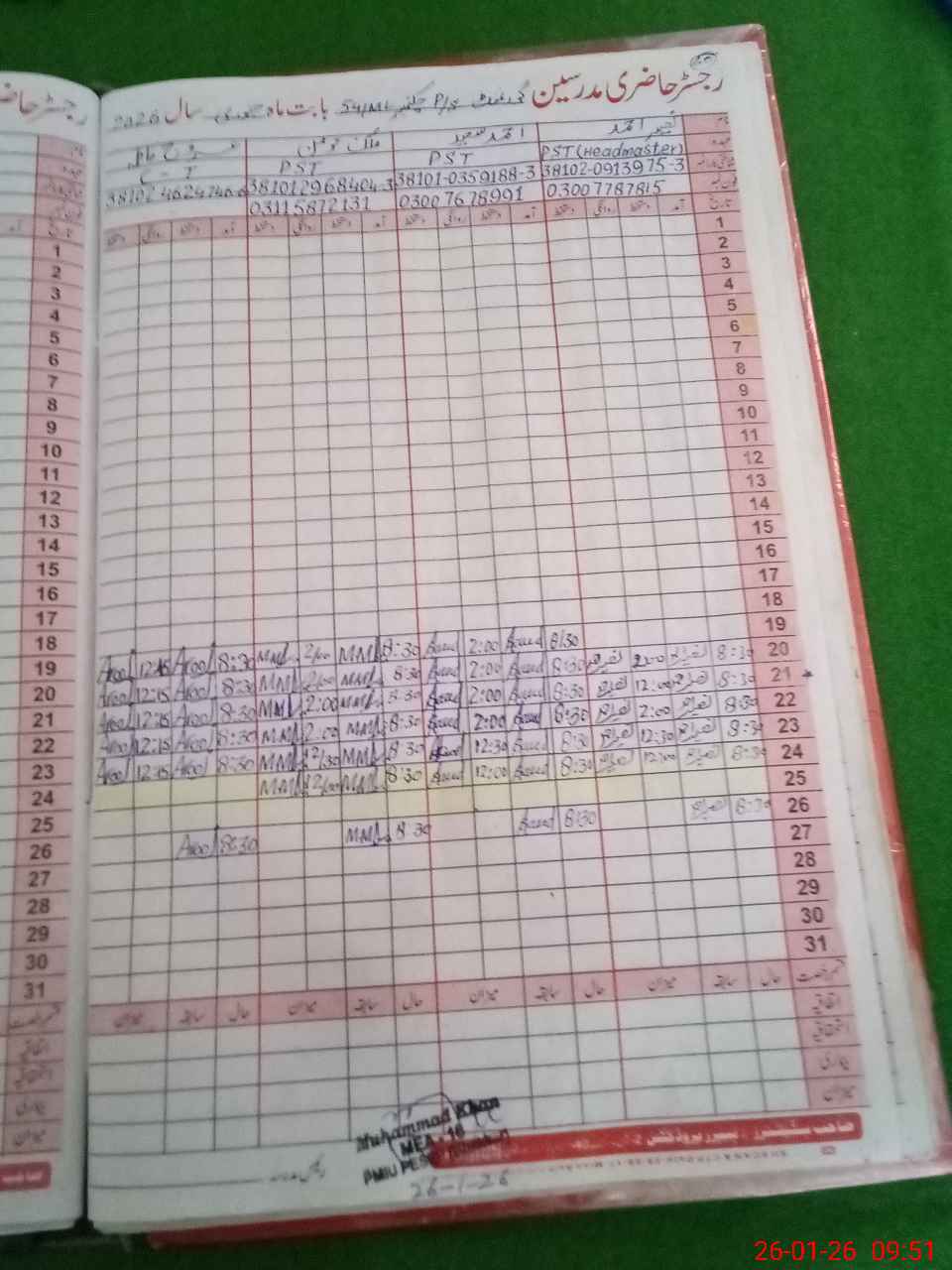 | Name: Na**** Ah**** Designation: (School Headmaster's/Headmistress's) PST Phone/Cell Number: 03**** |